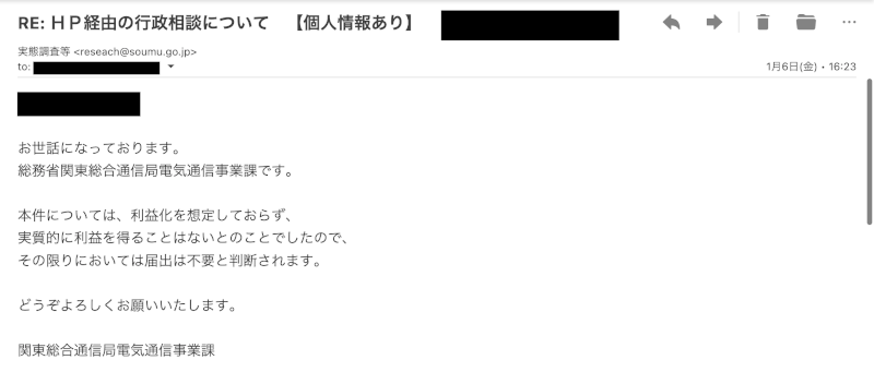 総務省関東総合通信局電気通信事業課に取り合わせたところ以下の返信を頂いたためここに貼り付けておきます。